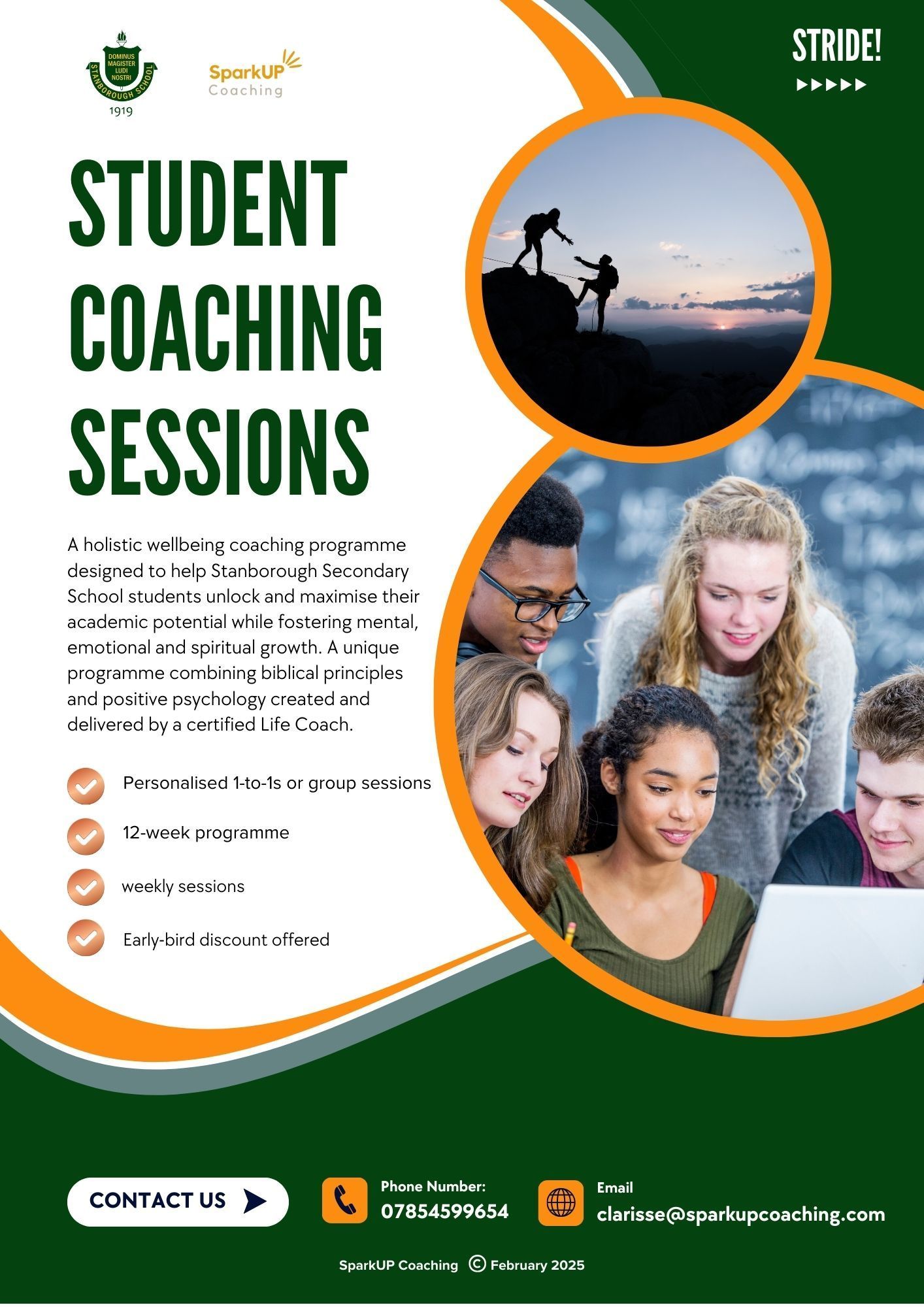 SparkUP Coaching is thrilled to introduce STRIDE! a dynamic student coaching programme will be launching at Stanborough Secondary School (UK) (date to be confirmed).